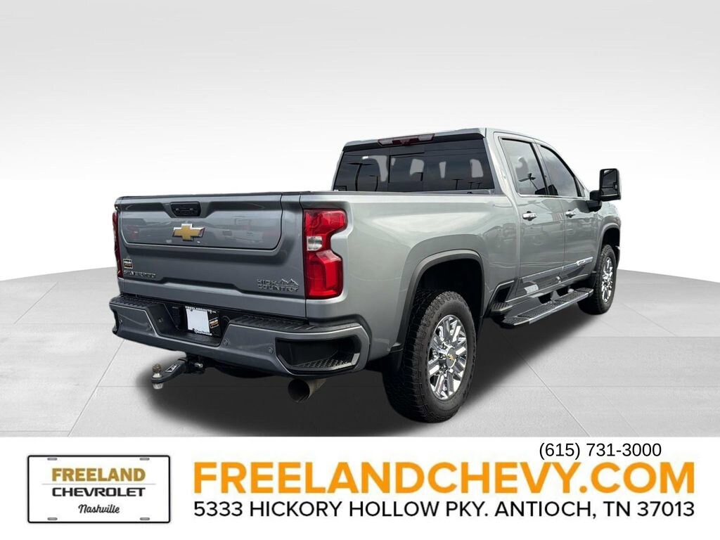 Freeland Chevrolet where Superstore Selection meets Southern Service. Gooseneck/5th Wheel Package (DISC), Gooseneck/5th Wheel Prep Package (Black Chevytec Spray-On Bedliner), Heavy Duty Front Spring/Camper Package, High Country Premium Package (Power Sunroof), Preferred Equipment Group 3LZ (120-Volt Bed Mounted Power Outlet, 120-Volt Interior Power Outlet, 170 Amp Alternator, 6 Rectangular Chromed Tubular Assist Steps, Auto-Dimming Inside Rear-View Mirror, Bed View Camera w/2 Trailer Camera Provisions, Bluetooth® For Phone, Chevrolet Connected Access Capable, Chrome Door Handles, Chrome Mirror Caps, Color-Keyed Carpeting Floor Covering, Compass, Deep-Tinted Glass, Electric Rear-Window Defogger, Electronic Cruise Control w/Set & Resume Speed, Front Carpeted Floor Mats, Front Chrome Recovery Hooks, Front LED Fog Lamps, Front Rain-Sensing Wipers, Heated 2nd Row Outboard Seats, Heated Steering Wheel, Hitch Guidance w/Hitch View, In-Vehicle Trailering App System, Keyless Open & Start, LED Cargo Area Lighting, Manual Tilt & Telescoping Steering Column, OnStar & Chevrolet Connected Services Capable, Polished Exhaust Tip, Power Door Locks, Power Front Windows w/Driver Express Up/Down, Power Front Windows w/Passenger Express Up/Down, Power Rear Windows w/Express Down, Power Sliding Rear Window w/Defogger, Push Button Start, Pwr Up/Down Tailgate Function w/Pwr Lock & Release, Rear Carpeted Floor Mats, Rear Cross Traffic Alert, Rear Wheelhouse Liners, Remote Vehicle Starter System, SiriusXM w/360L, Standard Tailgate, Steering Wheel Audio Controls, Trailer Camera Provisions, Ultrasonic Front & Rear Park Assist, Unauthorized Entry Theft-Deterrent System, Universal Home Remote, Wi-Fi Hotspot Capable, Wireless Charging, Wireless Phone Projection, and Wrapped Steering Wheel), Suspension Package, Technology Package (15 Diagonal Multicolor Head-Up Display, Adaptive Cruise Control, and Rear Camera Mirror), Up-Level Rear Seat w/Storage Package, 10-Speed Automatic, 4WD, Jet Black Leather, 10-Way Power Driver Seat Adjuster w/Lumbar, 10-Way Power Passenger Seat Adjuster w/Lumbar, 220 Amp Alternator, 4-Wheel Disc Brakes, 7 Speakers, 720 Cold-Cranking Amps Heavy-Duty Battery, ABS brakes, Air Conditioning, Alloy wheels, AM/FM radio: SiriusXM with 360L, Apple CarPlay/Android Auto, Auto High-beam Headlights, Auto-dimming door mirrors, Auto-dimming Rear-View mirror, Automatic temperature control, Body-Color Front Bumper, Body-Color Rear Bumper, Bodyside moldings, BOSE Premium 7-Speaker Sound System, Brake assist, Bumpers: body-color, Delay-off headlights, Driver door bin, Driver Memory, Driver vanity mirror, Dual front impact airbags, Dual front side impact airbags, Durabed Pickup Bed, Electronic Stability Control, Engine Block Heater, Exhaust Brake, EZ Lift Power Lock & Release Tailgate, Floor-Mounted Center Console, Front anti-roll bar, Front Bucket Seats, Front Center Armrest, Front dual zone A/C, Front fog lights, Front License Plate Kit, Front reading lights, Front wheel independent suspension, Fully automatic headlights, Garage door transmitter, Genuine wood console insert, Genuine wood dashboard insert, Genuine wood door panel insert, Heated door mirrors, Heated Driver & Front Outboard Passenger Seating, Heated front seats, Heated rear seats, Heated steering wheel, Illuminated entry, LED Taillamps w/Fixed Signature, Low tire pressure warning, Memory seat, Multi-Flex Tailgate, Occupant sensing airbag, Outside temperature display, Overhead airbag, Overhead console, Panic alarm, Passenger door bin, Passenger vanity mirror, Perforated Leather Seat Trim, Power door mirrors, Power driver seat, Power passenger seat, Power steering, Power windows, Premium audio system: Chevrolet Infotainment 3 Premium, Radio: Chevrolet Infotainment 3 Premium System, Rain sensing wipers, Rear reading lights, Rear seat center armrest, Rear step bumper, Rear window defroster, Remote keyless entry, Security system, Speed contro